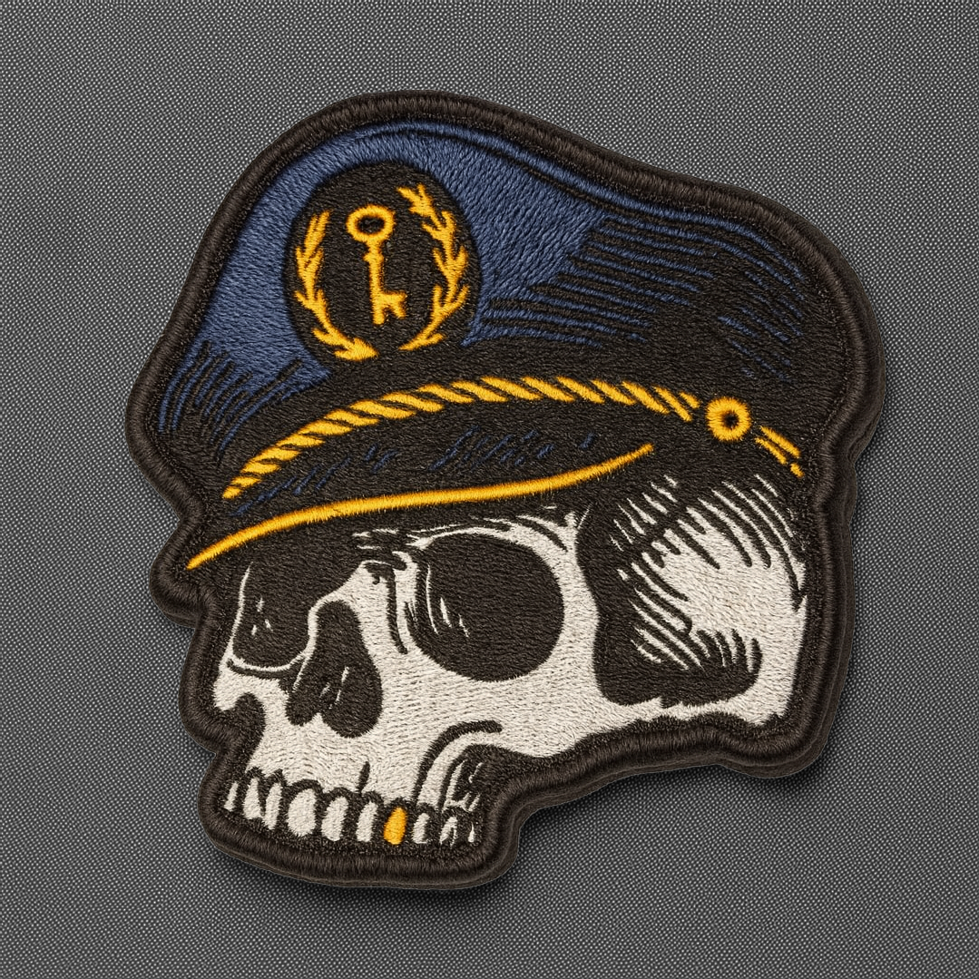This hand-drawn skull in a vintage naval cap symbolizes lost direction and the passage of time. Paired with the Landlocked Mermaid, it completes the story: where she holds the lock, he bears the key. A nod to maritime lore and memory, the design blends grit, mystery, and connection.